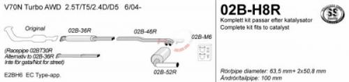 Catback výfuk Simons Volvo V70N Turbo 4WD 2.5T T5/2.4D D5 (06/04-). Kompletní výfukový systém od katalyzátoru.