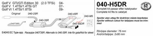 Catback výfuk Simons VW Golf 6 1.4TSi/1.8TSi (08-13). Kompletní výfukový systém od katalyzátoru.