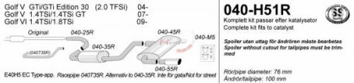 Catback výfuk Simons VW Golf 6 1.4TSi/1.8TSi (08-13). Kompletní výfukový systém od katalyzátoru.