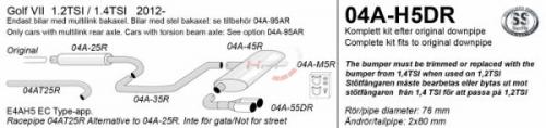 Catback výfuk Simons VW Golf 7 1.2TSi/1.4TSi (12-19). Kompletní výfukový systém od katalyzátoru.