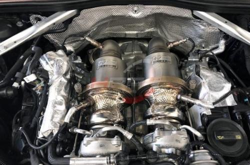 Downpipes s náhradami katalyzátorů Innotech (IPE) na Audi RS4 B9 2.9 V6 TFSi (18-). Downpipes (první díl výfuku) s náhradou katalyzátorů (decat pipes).