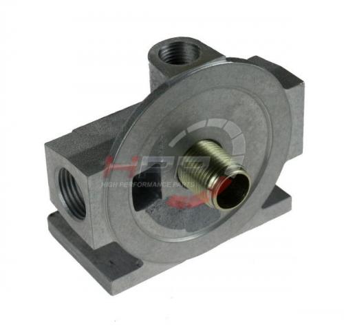 Externí relokační držák olejového filtru Mocal - 1x vývod 1/2"-BSP na každé straně + 5/8"-BSP čidlo - pravý