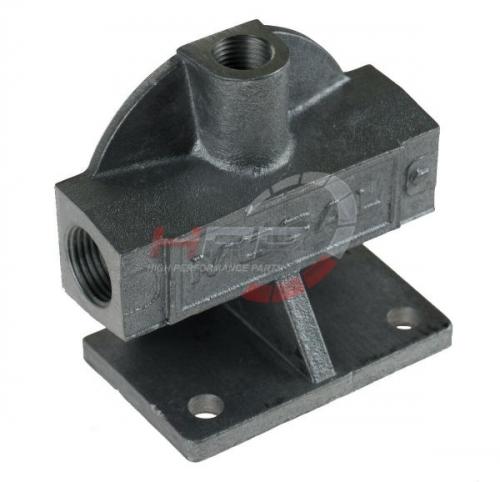 Externí relokační držák olejového filtru Mocal - 1x vývod 1/2"-BSP na každé straně + M14 čidlo. Směr toku z prava do leva.
