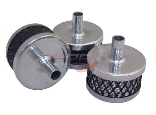 Filtr na odvětrání klikové skříně 13mm - stříbrný. Kovový krk.
