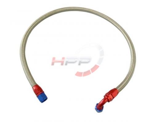 Robustní pancéřové hadice na olej. S barevnými alu koncovkami (1x rovný, 1x koleno 90° ostrý úhel)