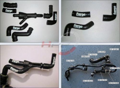 Silikonové hadice Forge Motorsport jsou vyrobené z vysoce kvalitního několika vrstvého silikonu za pomoci firmy Silicone Hoses. Hadice splňují nejvyšší požadavky profesionálních závodních podmínek, a to zejména dlouhodobou trvanlivost, minimální ztráty tlaku a teplotní odolnost. Jsou přizpůsobené specifickým potřebám motorsportu. Teplotní odolnost -50°C až 180°C.