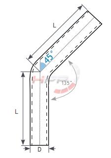 Hliníkové (Alu) koleno 45° - průměr 57mm (2,25") - délka 60cm.