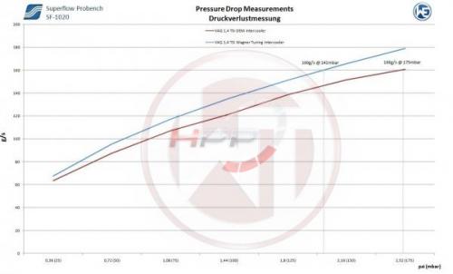 Vysoce výkonný intercooler německého výrobce Wagner Tuning disponuje jádrem o rozměru 590 x 170 x 100mm a nabízí o 70% větší chladící plochu a o 112% větší objem vzduchu v porovnání s originálním chladičem. Jádro zajišťuje velmi dobrý průtok vzduchu a je také velmi lehké. Váha celého intercooleru je pouhých 8,2kg. Bočnice jsou vyrobeny z litého hliníku a zajišťují optimální průtok a vysokou účinnost chlazení, která byla simulovaná a analyzována v CAD programech k docílení nejlepších výsledků. Výsledkem jsou výborné chladící vlastnosti s minimálním zpětným tlakem. Tento mezichladič je tou nejlepší volbou, pokud jde o nárůst výkonu a snížení teploty nasávaného vzduchu. IC disponuje antikorozním ochranným nátěrem s dokonalou charakteristikou rozptýlení tepla, byl testován do 6 barů. Snadná instalace Plug & Play pouhou výměnou za původní mezichladič. Wagner Tuning intercooler zaručuje optimální chlazení stlačeného vzduchu s jasným zvýšením výkonu! Všechny výrobky procházejí přísnou kontrolu kvality.