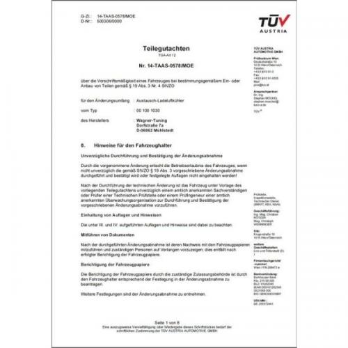 Vysoce výkonný přepracovaný intercooler 2. generace německého výrobce Wagner Tuning disponuje jádrem o rozměru 610 x 440 x 65mm a nabízí o 10% větší chladící plochu a o 50% větší objem vzduchu (17,45 litrů) v porovnání s originálním chladičem. Nově navržené závodní jádro zajišťuje velmi dobrý průtok vzduchu a je také velmi lehké. Bočnice jsou vyrobeny z litého hliníku a zajišťují optimální průtok a vysokou účinnost chlazení, která byla simulovaná a analyzována v CAD programech k docílení nejlepších výsledků. Výsledkem jsou výborné chladící vlastnosti s minimálním zpětným tlakem. Tento mezichladič je tou nejlepší volbou, pokud jde o nárůst výkonu a snížení teploty nasávaného vzduchu. IC disponuje antikorozním ochranným nátěrem s dokonalou charakteristikou rozptýlení tepla. Snadná instalace Plug & Play pouhou výměnou za původní mezichladič. Wagner Tuning intercooler zaručuje optimální chlazení stlačeného vzduchu s jasným zvýšením výkonu! Všechny výrobky procházejí přísnou kontrolu kvality. Intercooler pasuje na sériové tlakové vedení.
