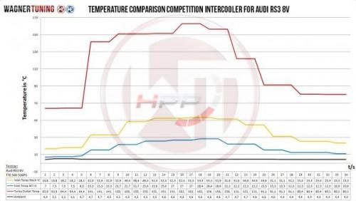 Vysoce výkonný intercooler německého výrobce Wagner Tuning disponuje jádrem o rozměru 515 x 367/274 x 95mm a nabízí o 84% větší chladící plochu a o 101% větší objem vzduchu (16,5 litrů) v porovnání s originálním chladičem. Nově navržené závodní jádro zajišťuje velmi dobrý průtok vzduchu a je také velmi lehké. Bočnice jsou vyrobeny z litého hliníku a zajišťují optimální průtok a vysokou účinnost chlazení, která byla simulovaná a analyzována v CAD programech k docílení nejlepších výsledků. Výsledkem jsou výborné chladící vlastnosti s minimálním zpětným tlakem. Tento mezichladič je tou nejlepší volbou, pokud jde o nárůst výkonu a snížení teploty nasávaného vzduchu. IC disponuje antikorozním ochranným nátěrem s dokonalou charakteristikou rozptýlení tepla. Snadná instalace Plug & Play pouhou výměnou za původní mezichladič. Wagner Tuning intercooler zaručuje optimální chlazení stlačeného vzduchu s jasným zvýšením výkonu! Všechny výrobky procházejí přísnou kontrolu kvality.