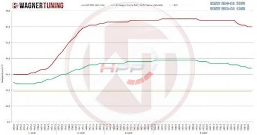 Vysoce výkonný intercooler německého výrobce Wagner Tuning disponuje jádrem o rozměru 520 x 210 x 150mm a nabízí o 85% větší chladící plochu a o 90% větší objem vzduchu v porovnání s originálními chladiči. Nově navržené jádro "bar and platen" zajišťuje velmi dobrý průtok vzduchu a je také velmi lehké. Bočnice jsou vyrobeny z litého hliníku a zajišťují optimální průtok a vysokou účinnost chlazení, která byla simulovaná a analyzována v CAD programech k docílení nejlepších výsledků. Výsledkem jsou výborné chladící vlastnosti s minimálním zpětným tlakem. Tento mezichladič je tou nejlepší volbou, pokud jde o nárůst výkonu a snížení teploty nasávaného vzduchu. IC disponuje antikorozním ochranným nátěrem s dokonalou charakteristikou rozptýlení tepla. Snadná instalace Plug & Play pouhou výměnou za původní mezichladiče. Wagner Tuning intercooler zaručuje optimální chlazení stlačeného vzduchu s jasným zvýšením výkonu! Všechny výrobky procházejí přísnou kontrolu kvality.