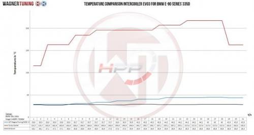 Vysoce výkonný intercooler německého výrobce Wagner Tuning disponuje jádrem o rozměru 510 x 303 x 180mm a nabízí o 133% větší chladící plochu a o 183% větší objem vzduchu v porovnání s originálním chladičem. Nově navržené závodní jádro "tube and fin" zajišťuje velmi dobrý průtok vzduchu a je také velmi lehké. Váha celého intercooleru je 13,2kg. Bočnice jsou vyrobeny z litého hliníku a zajišťují optimální průtok a vysokou účinnost chlazení, která byla simulovaná a analyzována v CAD programech k docílení nejlepších výsledků. Výsledkem jsou výborné chladící vlastnosti s minimálním zpětným tlakem. Tento mezichladič je tou nejlepší volbou, pokud jde o nárůst výkonu a snížení teploty nasávaného vzduchu. IC disponuje antikorozním ochranným nátěrem s dokonalou charakteristikou rozptýlení tepla. Snadná instalace Plug & Play pouhou výměnou za původní mezichladič. Wagner Tuning intercooler zaručuje optimální chlazení stlačeného vzduchu s jasným zvýšením výkonu! Všechny výrobky procházejí přísnou kontrolu kvality.