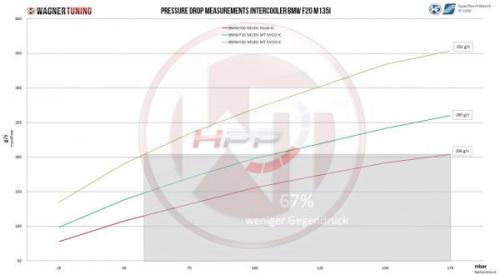 Vysoce výkonný intercooler německého výrobce Wagner Tuning disponuje jádrem o rozměru 520 x 210 x 150mm a nabízí o 165% větší chladící plochu a o 223% větší objem vzduchu v porovnání s originálními chladiči. Nově navržené jádro "tube and fin" zajišťuje velmi dobrý průtok vzduchu a je také velmi lehké. Bočnice jsou vyrobeny z litého hliníku a zajišťují optimální průtok a vysokou účinnost chlazení, která byla simulovaná a analyzována v CAD programech k docílení nejlepších výsledků. Výsledkem jsou výborné chladící vlastnosti s minimálním zpětným tlakem. Tento mezichladič je tou nejlepší volbou, pokud jde o nárůst výkonu a snížení teploty nasávaného vzduchu. IC disponuje antikorozním ochranným nátěrem s dokonalou charakteristikou rozptýlení tepla. Snadná instalace Plug & Play pouhou výměnou za původní mezichladiče. Wagner Tuning intercooler zaručuje optimální chlazení stlačeného vzduchu s jasným zvýšením výkonu! Všechny výrobky procházejí přísnou kontrolu kvality.