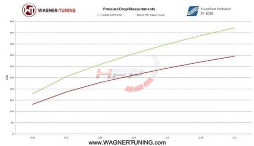 Vysoce výkonný intercooler německého výrobce Wagner Tuning disponuje jádrem o rozměru 610 x 440 x 65mm a nabízí o 10% větší chladící plochu a o 50% větší objem vzduchu (17,45 litrů) v porovnání s originálním chladičem. Nově navržené závodní jádro zajišťuje velmi dobrý průtok vzduchu a je také velmi lehké. Bočnice jsou vyrobeny z litého hliníku a zajišťují optimální průtok a vysokou účinnost chlazení, která byla simulovaná a analyzována v CAD programech k docílení nejlepších výsledků. Výsledkem jsou výborné chladící vlastnosti s minimálním zpětným tlakem. Tento mezichladič je tou nejlepší volbou, pokud jde o nárůst výkonu a snížení teploty nasávaného vzduchu. IC disponuje antikorozním ochranným nátěrem s dokonalou charakteristikou rozptýlení tepla. Snadná instalace Plug & Play pouhou výměnou za původní mezichladič. Wagner Tuning intercooler zaručuje optimální chlazení stlačeného vzduchu s jasným zvýšením výkonu! Všechny výrobky procházejí přísnou kontrolu kvality. Intercooler pasuje na sériové tlakové vedení.
