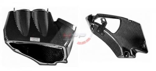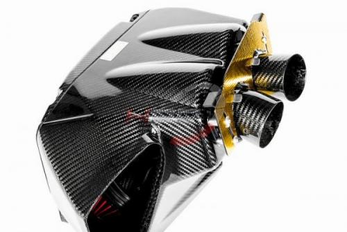 - pouzdro Airboxu stíní filtry od více zdrojů tepla v motoru. Největším zdrojem tepla je samotný motor/turbo, ale je tu také výměník, který také produkuje značné teplo. Všechny tyto tepelné zdroje potřebují kompletní system airboxu jako ochranu. Jen filtr a teplený štít nestačí. Airbox tak zabraňuje teplu aby nepříznivě působilo na kuželové filtry, které jsou připojeny ke kanálu, který přivádní studený vzduch přímo do airboxu. Ten se skládá z 2 vysoce výkonných filtrů s vysokým průtokem, karbonového krytu, a CNC obráběných úchytů.