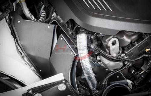 - tento sekundární štít se montuje nad výfukovým potrubím a chrání tak turbo od přímého tepla. Stejně jako u hlavního štítu je sekundární štít opatřen černou a stříbrnou povrchovou úpravou.