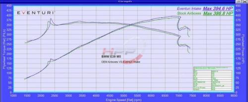 Sportovní karbonové sání Eventuri pro BMW M5 E39 je navrženo jako kompletní řešení pro nahrazení originálních airboxů. Naším cílem bylo vyvinout takové sání pro motory S62, které bude funkční se sériovou mapou řídicí jednotky a snímačem množství nasávaného vzduchu, a které povede k navýšení výkonu a citelně lepšímu jízdnímu zážitku. Použitím patentovaných Eventuri airboxů bylo zajištěno plynulé proudění vzduchu do motoru. Tyto airboxy jsou navíc vyrobeny z karbonových vláken, čímže je vzduchový filtr chráněn před nežádoucím teplem. Studený vzduch je pak k filtrům přiváděn dvojicí hadic, které vedou čerstvý vzduch od rámečků mlhovek, které jsme pro tento účel vyvinuli.