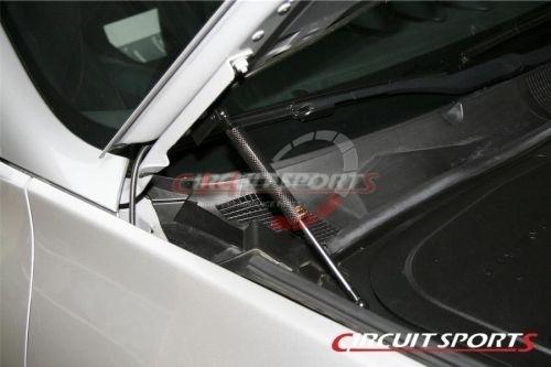 Vzpěry kapoty americké firmy Circuit Sports, které jsou vyrobené z pravého karbonu, jsou určené pro přímou montáž. Nahrazují sériovou podpěru kapoty. Umožňují lehčí manipulaci s otevřenou kapotou a její rozmanitější polohování. V neposlední řadě dodávají motorovému prostoru exkluzivní vzhled. Dodáváno s veškerým instalačním přílušenstvím.