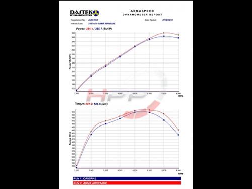 Poznámka: k dispozici je také variabilní typ sání za příplatek, který je viditelný na fotkách. Ten obsahuje vzduchový filtr s nerezovou konstrukcí a vestavěnou klapkou, která je ovládána elektronicky pomocí dálkového ovladače a řídící jednotky napojenou do OBDII konektoru. Hlavním cílem je obnova ztráty kroutícího momentu hlavně v nízkých otáčkách, což je častý jev u sportovních filtrů. Klapka umožňuje individuálně nastavit proudění vzduchu pomocí dálky nebo Wi-Fi aplikace v chytrém telefonu (Apple, Google). Tento systém je patentován v Německu firmou Arma.