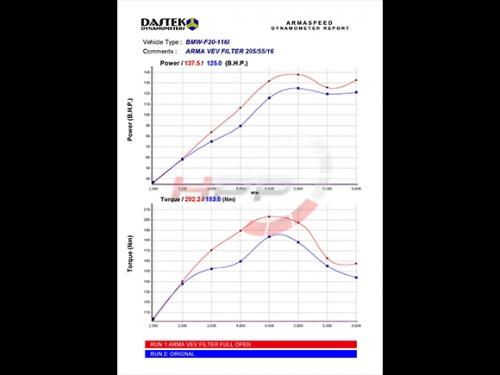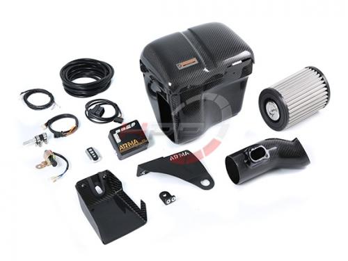 Poznámka: k dispozici je také variabilní typ sání za příplatek, který je viditelný na fotkách. Ten obsahuje vzduchový filtr s nerezovou konstrukcí a vestavěnou klapkou, která je ovládána elektronicky pomocí dálkového ovladače a řídící jednotky napojenou do OBDII konektoru. Hlavním cílem je obnova ztráty kroutícího momentu hlavně v nízkých otáčkách, což je častý jev u sportovních filtrů. Klapka umožňuje individuálně nastavit proudění vzduchu pomocí dálky nebo Wi-Fi aplikace v chytrém telefonu (Apple, Google). Tento systém je patentován v Německu firmou Arma.