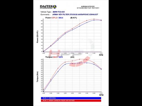 Poznámka: k dispozici je také variabilní typ sání za příplatek, který je viditelný na fotkách. Ten obsahuje vzduchový filtr s nerezovou konstrukcí a vestavěnou klapkou, která je ovládána elektronicky pomocí dálkového ovladače a řídící jednotky napojenou do OBDII konektoru. Hlavním cílem je obnova ztráty kroutícího momentu hlavně v nízkých otáčkách, což je častý jev u sportovních filtrů. Klapka umožňuje individuálně nastavit proudění vzduchu pomocí dálky nebo Wi-Fi aplikace v chytrém telefonu (Apple, Google). Tento systém je patentován v Německu firmou Arma.