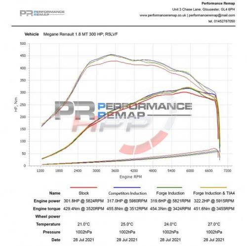 Měření ukázalo, že samotnou instalací sportovního kitu sání lze dosáhnout nárůstu +15PS. V kombinaci se vstupem do turbodmychadla Forge Motorsport FMTIA4 bylo dosaženo dokonce nárůstu o +20PS. Nárůst výkonu pak doplňuje výrazně rychlejší odezva na sešlápnutí plynu.
