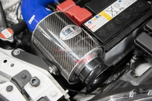 Během našeho testování jsme zjistili, že umístění původní vzduchového airboxu bylo náchylné na velké množství nasávání tepla, což nás vedlo k relokaci filtru na vhodnější místo. Po rozsáhlém testování jsme zjistili, že naše filtry z uhlíkových vláken fungovaly nejlépe. Vlastní filtrační vložka je dodávána společností Pipercross a je v případě potřeby plně servisovatelná nebo vyměnitelná. Potrubí soustavy vede kolem studené strany motoru, což opět slouží k udržení teploty sání na co nejnižší úrovni. Celkově jsme pozorovali pokles vstupních teplot z 32°C na 26°C. Tato čísla budou ještě klesat s přidáním mezichladiče.