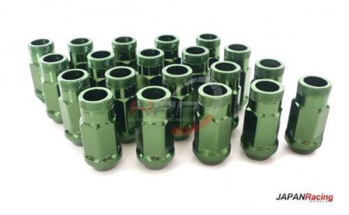 Kolové matice (štefty) Japan Racing JN1 zelené (ocelové). Pasují na Nissan, Subaru, Suzuki, Mazda...