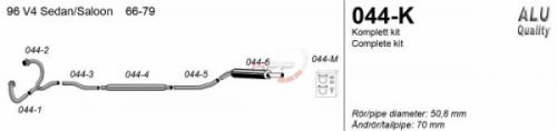Kompletní výfuk Simons Saab 96 sedan 1.5 V4 (66-79). Kompletní výfukový systém od výfukových svodů.
