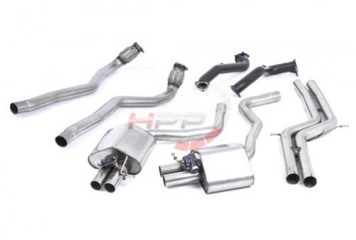 Kompletní výfukový systém Milltek Sports Audi RS6 C7 4.0 TFSI Bi-turbo Quattro (13-). Kompletní výfukový systém včetně sportovních 100 celových katalyzátorů a downpipes (první díly výfuku). Nahrazují sériové primární katalyzátory plně průchozími náhradami a sekundární katalyzátory vysoce propustnými sportovními. Downpipes jsou potaženy speciální tepelnou povrchovou úpravou. Určeno pro hodně upravená vozidla.