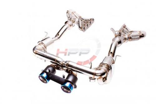 Kompletní výfukový systém se sportovními katalyzátory a svody Innotech (IPE) na Ferrari 458 Italia Spider 4.5 V8 (10-15) - Evolution Edition. Kompletní výfukový systém včetně výfukových svodů.