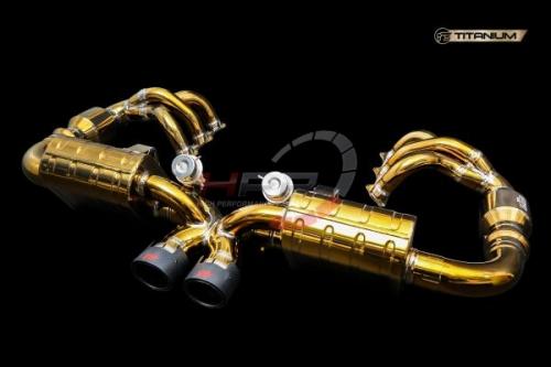 Kompletní výfukový systém se sportovními katalyzátory a svody Innotech (IPE) na Porsche 991 GT3 (13-15) / GT3 RS (15-16) - titanový. Kompletní výfukový systém včetně výfukových svodů.