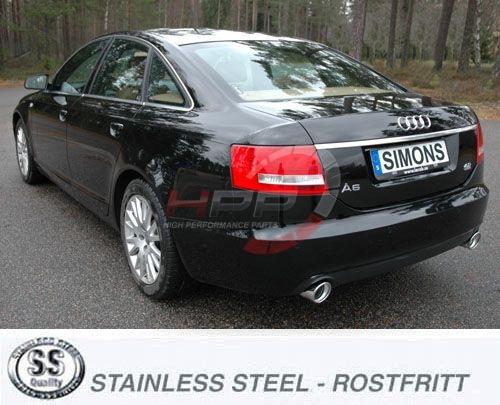 Koncové tlumiče výfuku Simons Audi A6 4F 2WD 2.0TFSI (05-11). Kompletní výfukový systém od katalyzátoru.