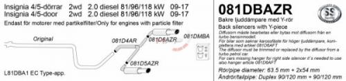 Koncové tlumiče výfuku Simons Opel Insignia 2WD 4/5dv. 2.0 Diesel 81/96/118kW (09-17). Kompletní výfukový systém od středového tlumiče. Určeno pouze pro modely s pevným filtrem částic.