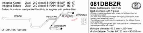 Koncové tlumiče výfuku Simons Opel Insignia 2WD kombi 2.0 Diesel 81/96/118kW (09-17). Kompletní výfukový systém od středového tlumiče. Určeno pouze pro modely s pevným filtrem částic.