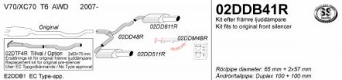 Poznámka: k výfuku lze zakoupit středový tlumič 02DTF4R (2x 63mm - 1x70mm), výfuk pak ale ztrácí homologaci.