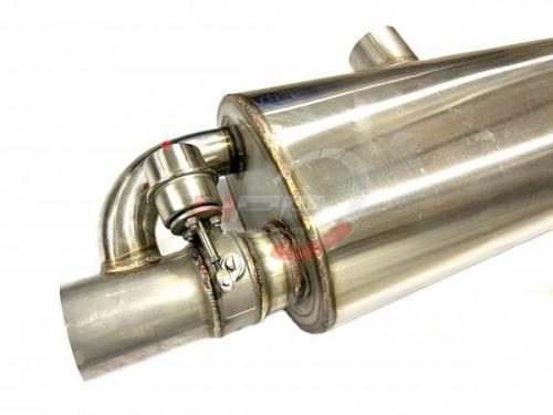 Univerzální koncový tlumič výfuku vyrobený kompletně z nerezové oceli T304 s integrovanými podtlakovými výfukovými klapkami. Klapky jsou ovládány podtlakově.