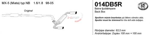 Koncový tlumič výfuku Simons Mazda MX-5 NB 1.6/1.8 (98-05). Duplex. Nutná úprava zadního nárazníku.