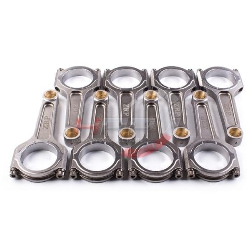 Kované ojnice od firmy ZRP se vyznačují perfektní kvalitou a přesností. Ojnice procházejí dodatečnými obráběcími procesy. Postranní žebrování minimalizuje kroucení ojnice a také redukuje její váhu. Pouzdra disponují radiální drážkou a jsou vyrobena ze slitin hliníku, bronzu a silikonu. Spojovací rukávy zaručují perfektní přesnost při montáži a opětovné použití. Drážkování v opěrných bodech poskytuje redukci váhy. Ojnice procházejí několika technickými kroky. Brokování zaručuje delší životnost. Magnaflux zaručuje kontrolu konzistence kovaného materiálu, který musí splňovat vysoký standard. Několika stupňový žárovací proces zaručuje vysokou pevnost, rozměrovou stálost a eliminuje únavu materiálu. Obrábění na CNC strojích zaručuje vynikající toleranci a přesnost 0.0003". Optimální vyvážení celé sady (+/- 1g). Přesnost osové vzdálenosti s tolerancí 001". Počítačová analýza Finite Element Analysis (FEA) odhaluje možné napětí. Šrouby ARP 2000 jsou rezistentní do upínací síly až 220.000psi, ARP L-19 pak až do síly 260.000/270.000psi. Kombinované testy prokázaly výdrž ojnic přes 700PS+ s použitím šroubů ARP 2000, se šrouby L-19 přes 800PS+ u 4-válcového motoru a 1000PS+ u 6-válcového motoru. Ojnice jsou dodávány s lubrikantem ARP moly a montážními instrukcemi.