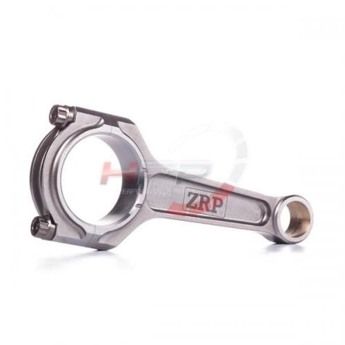 Kované ojnice od firmy ZRP se vyznačují perfektní kvalitou a přesností. Ojnice procházejí dodatečnými obráběcími procesy. Postranní žebrování minimalizuje kroucení ojnice a také redukuje její váhu. Pouzdra disponují radiální drážkou a jsou vyrobena ze slitin hliníku, bronzu a silikonu. Spojovací rukávy zaručují perfektní přesnost při montáži a opětovné použití. Drážkování v opěrných bodech poskytuje redukci váhy. Ojnice procházejí několika technickými kroky. Brokování zaručuje delší životnost. Magnaflux zaručuje kontrolu konzistence kovaného materiálu, který musí splňovat vysoký standard. Několika stupňový žárovací proces zaručuje vysokou pevnost, rozměrovou stálost a eliminuje únavu materiálu. Obrábění na CNC strojích zaručuje vynikající toleranci a přesnost 0.0003". Optimální vyvážení celé sady (+/- 1g). Přesnost osové vzdálenosti s tolerancí 001". Počítačová analýza Finite Element Analysis (FEA) odhaluje možné napětí. Šrouby ARP 2000 jsou rezistentní do upínací síly až 220.000psi, ARP L-19 pak až do síly 260.000/270.000psi. Kombinované testy prokázaly výdrž ojnic přes 700PS+ s použitím šroubů ARP 2000, se šrouby L-19 přes 800PS+ u 4-válcového motoru a 1000PS+ u 6-válcového motoru. Ojnice jsou dodávány s lubrikantem ARP moly a montážními instrukcemi.
