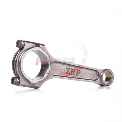 Kované ojnice od firmy ZRP se vyznačují perfektní kvalitou a přesností. Ojnice procházejí dodatečnými obráběcími procesy. Postranní žebrování minimalizuje kroucení ojnice a také redukuje její váhu. Pouzdra disponují radiální drážkou a jsou vyrobena ze slitin hliníku, bronzu a silikonu. Spojovací rukávy zaručují perfektní přesnost při montáži a opětovné použití. Drážkování v opěrných bodech poskytuje redukci váhy. Ojnice procházejí několika technickými kroky. Brokování zaručuje delší životnost. Magnaflux zaručuje kontrolu konzistence kovaného materiálu, který musí splňovat vysoký standard. Několika stupňový žárovací proces zaručuje vysokou pevnost, rozměrovou stálost a eliminuje únavu materiálu. Obrábění na CNC strojích zaručuje vynikající toleranci a přesnost 0.0003". Optimální vyvážení celé sady (+/- 1g). Přesnost osové vzdálenosti s tolerancí 001". Počítačová analýza Finite Element Analysis (FEA) odhaluje možné napětí. Šrouby ARP 2000 jsou rezistentní do upínací síly až 220.000psi, ARP L-19 pak až do síly 260.000/270.000psi. Kombinované testy prokázaly výdrž ojnic přes 700PS+ s použitím šroubů ARP 2000, se šrouby L-19 přes 800PS+ u 4-válcového motoru a 1000PS+ u 6-válcového motoru. Ojnice jsou dodávány s lubrikantem ARP moly a montážními instrukcemi.