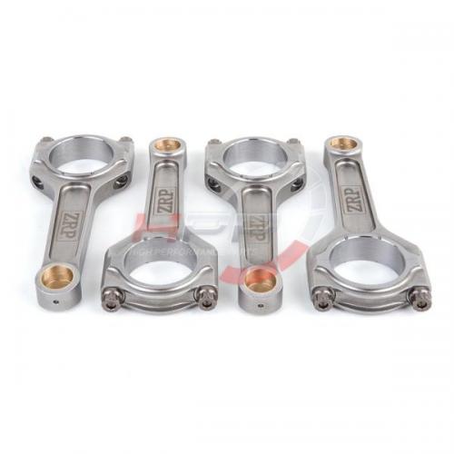 Kované ojnice od firmy ZRP se vyznačují perfektní kvalitou a přesností. Ojnice procházejí dodatečnými obráběcími procesy. Postranní žebrování minimalizuje kroucení ojnice a také redukuje její váhu. Pouzdra disponují radiální drážkou a jsou vyrobena ze slitin hliníku, bronzu a silikonu. Spojovací rukávy zaručují perfektní přesnost při montáži a opětovné použití. Drážkování v opěrných bodech poskytuje redukci váhy. Ojnice procházejí několika technickými kroky. Brokování zaručuje delší životnost. Magnaflux zaručuje kontrolu konzistence kovaného materiálu, který musí splňovat vysoký standard. Několika stupňový žárovací proces zaručuje vysokou pevnost, rozměrovou stálost a eliminuje únavu materiálu. Obrábění na CNC strojích zaručuje vynikající toleranci a přesnost 0.0003". Optimální vyvážení celé sady (+/- 1g). Přesnost osové vzdálenosti s tolerancí 001". Počítačová analýza Finite Element Analysis (FEA) odhaluje možné napětí. Šrouby ARP 2000 jsou rezistentní do upínací síly až 220.000psi, ARP L-19 pak až do síly 260.000/270.000psi. Kombinované testy prokázaly výdrž ojnic přes 700PS+ s použitím šroubů ARP 2000, se šrouby L-19 přes 800PS+ u 4-válcového motoru a 1000PS+ u 6-válcového motoru. Ojnice jsou dodávány s lubrikantem ARP moly a montážními instrukcemi.