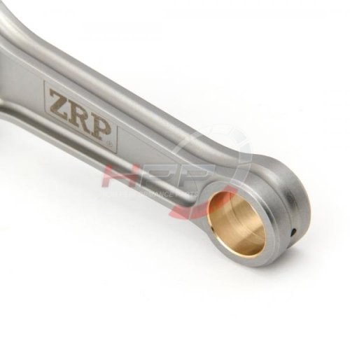 Kované ojnice od firmy ZRP se vyznačují perfektní kvalitou a přesností. Ojnice procházejí dodatečnými obráběcími procesy. Postranní žebrování minimalizuje kroucení ojnice a také redukuje její váhu. Pouzdra disponují radiální drážkou a jsou vyrobena ze slitin hliníku, bronzu a silikonu. Spojovací rukávy zaručují perfektní přesnost při montáži a opětovné použití. Drážkování v opěrných bodech poskytuje redukci váhy. Ojnice procházejí několika technickými kroky. Brokování zaručuje delší životnost. Magnaflux zaručuje kontrolu konzistence kovaného materiálu, který musí splňovat vysoký standard. Několika stupňový žárovací proces zaručuje vysokou pevnost, rozměrovou stálost a eliminuje únavu materiálu. Obrábění na CNC strojích zaručuje vynikající toleranci a přesnost 0.0003". Optimální vyvážení celé sady (+/- 1g). Přesnost osové vzdálenosti s tolerancí 001". Počítačová analýza Finite Element Analysis (FEA) odhaluje možné napětí. Šrouby ARP 2000 jsou rezistentní do upínací síly až 220.000psi, ARP L-19 pak až do síly 260.000/270.000psi. Kombinované testy prokázaly výdrž ojnic přes 700PS+ s použitím šroubů ARP 2000, se šrouby L-19 přes 800PS+ u 4-válcového motoru a 1000PS+ u 6-válcového motoru. Ojnice jsou dodávány s lubrikantem ARP moly a montážními instrukcemi.