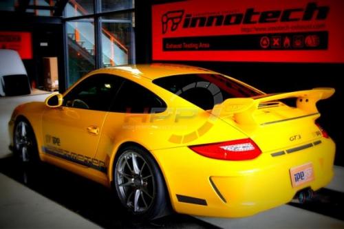 Laděné výfukové svody se sportovními katalyzátory Innotech (IPE) na Porsche 997 GT3 (06-09).