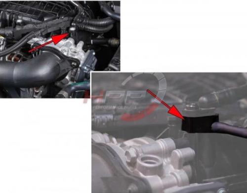 Instalační kit pro přídavný budík tlaku turba. Určený pro montáž pro sériový boost sensor. Vývod na 5mm podtlakovou hadičku pro připojení budíku tlaku turba nebo dalších zařízení ovládaných podtlakem (blow off ventil, ostřik voda metanol atp.). Podtlakové vyústění směřuje zepředu adaptéru.