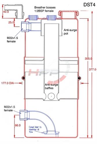 Nádržku britského výrobce Mocal lze plně servisovat díky své tří dílné konstrukci, při poruše nebo destrukci motoru ji lze jednoduše demontovat a kompletně vyčistit, případně z ní odstranit kontaminace. Slouží k efektivnímu provětrání oleje. Vnitřní konstrukce obsahuje přepážky na eliminaci přelévání za každých podmínek. Vstupní přívod je navržen pro hladký tok oleje a eliminaci turbulencí. Nádržka je navržena tak, aby pojmula půl objemu své kapacity. Vyrobena z velice kvalitní slitiny hliníku.