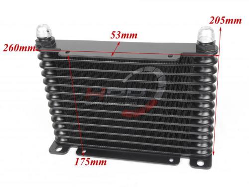 Přídavný olejový chladič (Oil cooler). Rozměry jádra: 250 x 175 x 32mm. Celkové rozměry: 260 x 205 x 53mm. 13 chladících šachet.