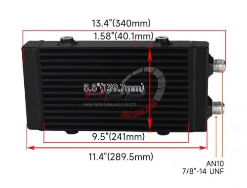 Přídavný olejový chladič (Oil cooler). Rozměry jádra: 241 x 140 x 40mm. Celkové rozměry: 290 x 140 x 40mm. 13 chladících šachet.
