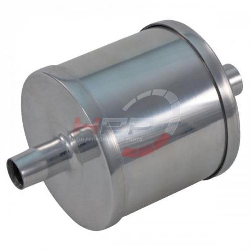 Olejový filtr inline na odvětrání klikové skříně 13/16/19mm - stříbrný. Kovový krk.