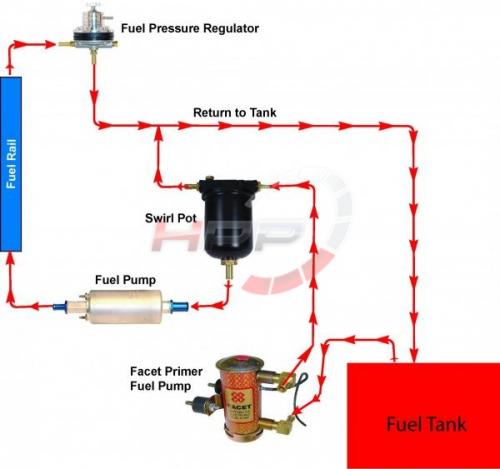 Palivová sběrná nádobka (fuel swirl pot) Malpassi - vývod...